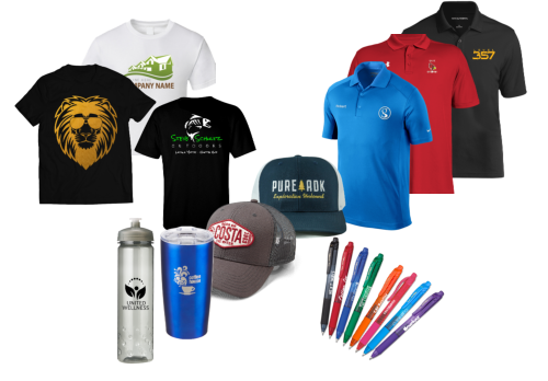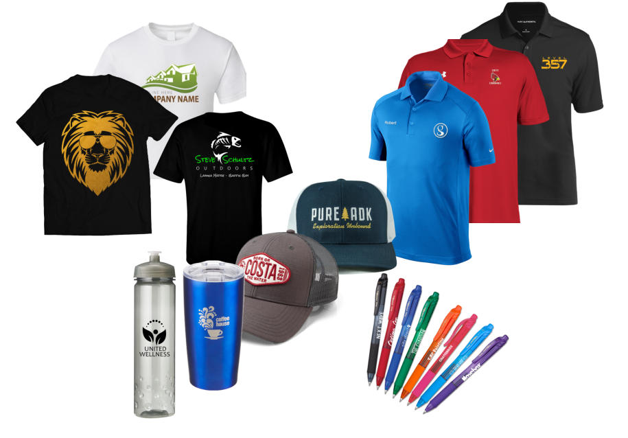 (Screen printed or embroidered), Hats, Pens, Tumblers and so much more. Literally to many